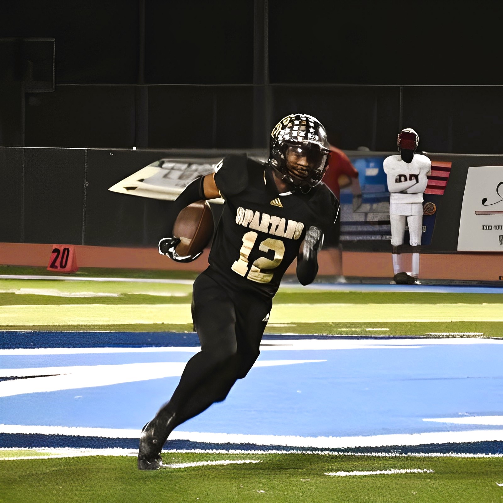 - 40yd dash (4.45), 5-10-5(4.0), Bench(225), Squat(435)